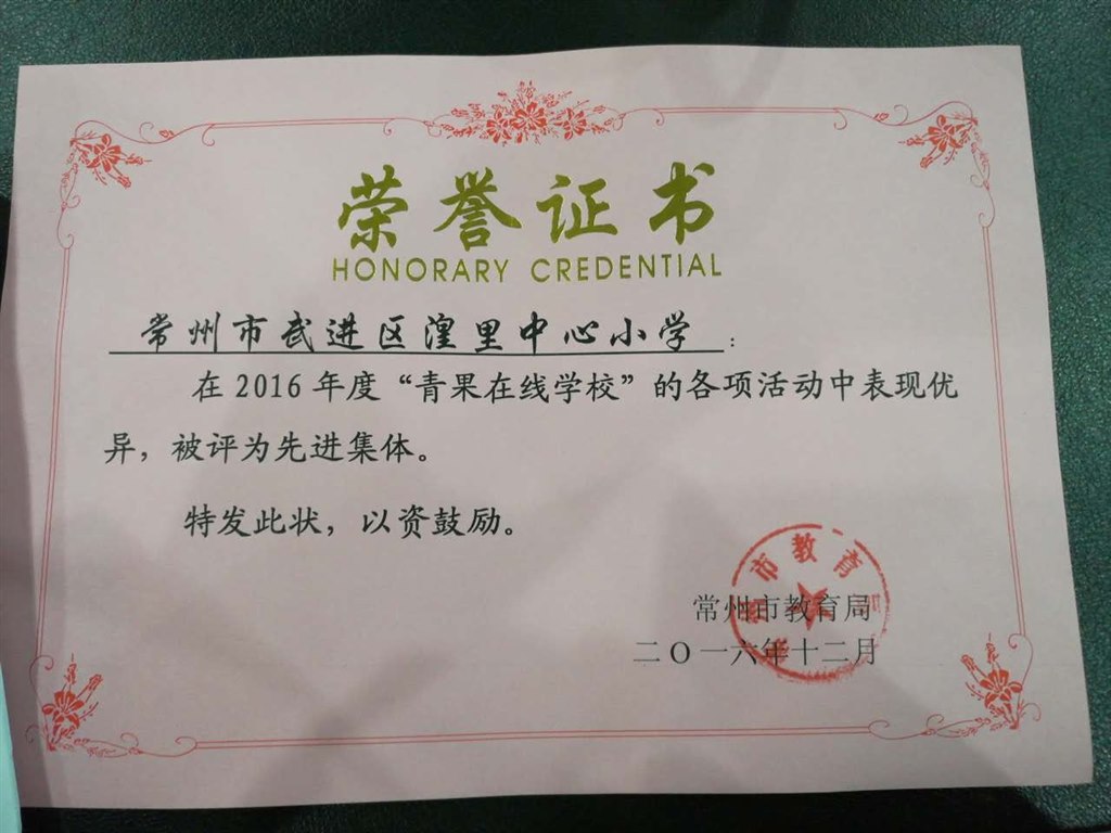 我校作为常州市第二批数字化试点学校,以“青果在线学校”和“十三五”全国信息技术课题为抓手,开展数字化学习的研究工作。在2016年度“青果在线学校”的各项活动中表现优异,被常州市教育局评为先进集体。